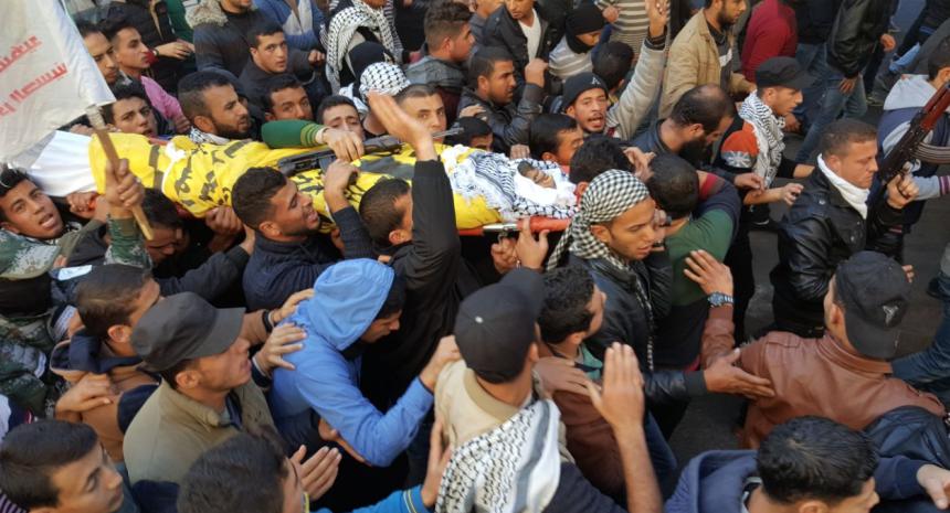 شيع آلاف الفلسطينيين، السبت، جثامين 4 شهداء في قطاع غزة ارتقوا خلال مواجهات وغارات جوية يشنها جيش العدو المحتل، منذ ليل الجمعة على القطاع على خلفية تنامي الاحتجاجات الشعبية الرافضة لقرار الرئيس الأمريكي «دونالد ترامب» الاعتراف بمدينة القدس المحتلة عاصمة لـ(إسرائيل). وبحسب وزارة الصحة الفلسطينية، فإن فلسطينيين اثنين؛ هما (محمود المصري، وماهر عطاالله)، استشهدا خلال المواجهات بين عشرات من الشبان وجنود العدو المحتل على الحدود الشرقية للقطاع. فيما استشهد اثنان آخران؛ هما (محمود العطل، ومحمد الصفدي)، من كتائب «عز الدين القسّام»، الجناح المسلّح لحركة «حماس»، جراء قصف العدو المحتل الذي استهدف موقعاً للمقاومة الفلسطينية، وفق الخليج الجديد. وانطلقت جنازة الشهيد «المصري» (30 عاما) من مستشفى «الأوروبي»، في مدينة خانيونس جنوبي القطاع. فيما انطلقت جنازة الشهيد «عطاالله» (54 عاما)، من مستشفى «الإندونيسي»، في منطقة الشيخ زايد شمالي القطاع. وفي السياق ذاته، انطلق موكب لتشيع الشهيديْن، «العطل» (27 عاما) و«الصفدي» (30عاما)، من مستشفى الشفاء غربي مدينة غزة، باتجاه مسقط رأس كل منهما في منطقة «الشيخ رضوان» شمال غرب المدينة، و«حي الدرج» وسط المدينة . وأدى آلاف الفلسطينيين صلاة الجنازة على جثامين الشهداء، كل منهم على حدة، قبل أن توارى جثامينهم الثرى في مقابر المدينة. ونعت «كتائب عز الدين القسام» في تصريح صحفي، الشهيدين «العطل»، و«الصفدي» اللذين سقطا خلال قصف العدو المحتل فجر اليوم جنوب مدينة غزة، بحسب ما نشرته وكالة «الأناضول» للأنباء. وفي وقت سابق من صباح السبت، قالت وزارة الصحة الفلسطينية، إن أحداث المواجهات وتصعيد العدو المحتل ضد قطاع غزة، منذ أمس الجمعة، تسببت بسقوط 4 شهداء، وإصابة 1114 فلسطينياً، بينهم 4 حالات خطيرة.