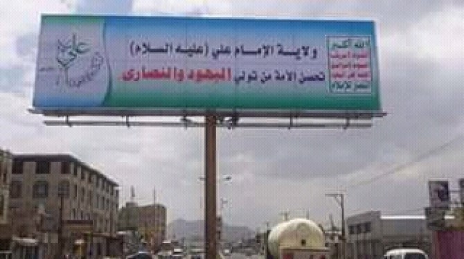 ملأت ميليشيا الحوثي الانقلابية، شوارع العاصمة اليمنية صنعاء بآلاف اللافتات والشعارات الطائفية، وذلك في إطار الاحتفال لإحياء مناسبة شيعية إيرانية لم يعرفها اليمنيون من قبل، وهي "عيد الغدير" (18 ذو الحجة)، والترويج لها بالتركيز على مفهوم "الولاية" وحقها المزعوم في الحكم، حسب العربية نت.