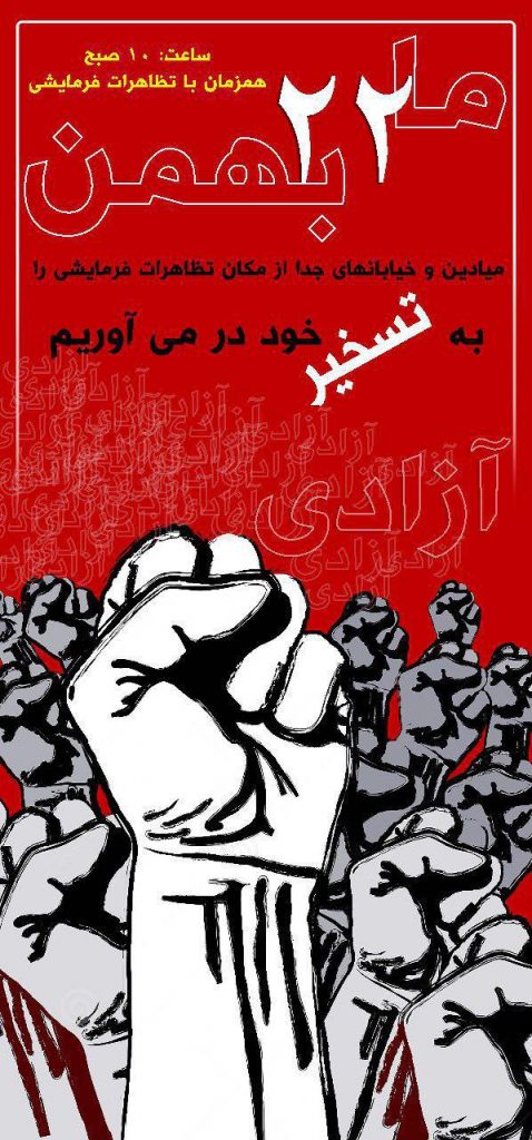 نشرت حسابات وقنوات عبر مواقع وشبكات التواصل بيانات ودعوات لمظاهرات مناهضة للنظام في إيران الأحد، في الذكرى الأربعين لانتصار الثورة التي أطاحت بالشاه عام 1979 وذلك بالتزامن مع المظاهرات المؤيدة التي يسيرها النظام كل عام.