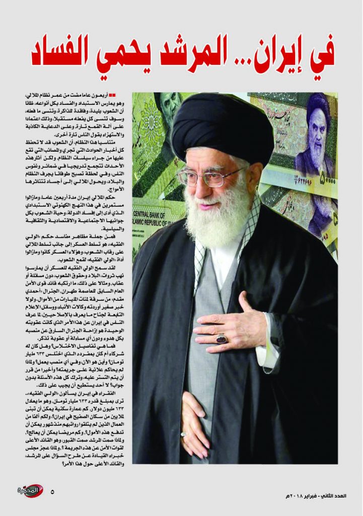 أربعون عاما مضت من عمر نظام الملالي، وهو يمارس الاستبداد والفساد بكل أنواعه، ظانا أن الشعوب بليدة، وفاقدة للذاكرة، وتنسى ما فعله، وسوف تنسى كل يفعله مستقبلا، وذلك اعتمادا على آلة القمع تارة, وعلى الدعاية الكاذبة والاستهزاء بقول الناس تارة أخرى. متناسيا هذا النظام، أن الشعوب قد لا تحفظ كل أخبار الحوادث التي تجري والمصائب التي تقع عليها من جراء سياسات النظام, ولكن آثارهذه الأحداث تتجمع تدريجيا في ضمائر ونفوس الناس، وفي لحظة تصبح طوفانا يجرف النظام والبلاد، ويحول الملالي إلى أجساد تتناثرها الأمواج. حكم الملالي إيران مدة أربعين عاما، ومازالوا مستمرين في هذا النهج الكهنوتي الاستبدادي الذي أدى إلى إفساد الدولة، وحياة الشعوب بكل جوانبها الاجتماعية والاقتصادية والثقافية والسياسية. فمن جملة مظاهر مفاسد حكم «الولي الفقيه»، هو تسلط العسكر إلى جانب تسلط الملالي على رقاب الشعوب، وهؤلاء العسكر كانوا ومازالوا أداة «الولي الفقيه» لقمع الشعوب. لقد سمح الولي الفقيه للعسكر أن يمارسوا نهب ثروات، البلاد وحقوق الشعوب، دون مسائلة أو عقاب, ومثالا على ذلك، ما ارتكبه قائد قوى الأمن العام السابق للعاصمة طهران, العميد «إسماعيل أحمدي مقدم» من سرقة لمئات المليارات من الأموال. ولولا خبر صغير أوردته وكالات الأنباء، ووسائل الإعلام التابعة لجناح ما يعرف بالإصلاحيين، لما عرف الناس في إيران عن هذا الأمر الذي كانت عقوبته الوحيدة هو إزاحة الجنرال السارق عن منصبه بكل هدوء ودون أي مساءلة أو عقوبة تذكر. فما هي تفاصيل الاختلاس؟ وهل كان له شركاء أم كان بمفرده الذي اختلس 633 مليار تومان؟ وأين هو الآن، وفي أي منصب يعمل؟ ولماذا لم يحاكم علانية على جريمته؟ وأخيرا من قرر أن يتم التستر عليه، وترك كل هذه الأسئلة بدون جواب؟ لا أحد يستطيع أن يجيب على ذلك. الفقراء في إيران يسألون «الولي الفقيه».. ترى بمبلغ قدره 633 مليار تومان, وهو ما يعادل 633 مليون دولار, كم عمارة سكنية يمكن أن تبنى لملايين من سكان الصفيح في إيران؟، ولكم ألفا من العمال الذين لم يتلقوا رواتبهم منذ شهور يمكن أن تدفع هذه الأمول؟, وكم مريضا يمكن أن يعالج؟, ولماذا صمت المرشد صمت القبور، وهو القائد الأعلى لقوات الأمن عن هذه الجريمة ؟, ولماذا عجز مجلس خبراء القيادة عن طرح السؤال على المرشد، والقائد الأعلى حول هذا الأمر؟