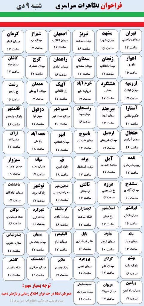 مواعيد المظاهرات ضد نظام الملالي في إيران