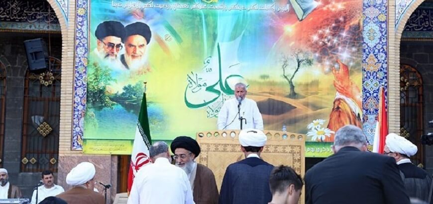 صور خامنئي والعلم الإيراني تملأ ساحات دمشق احتفالا بـ"الغدير"