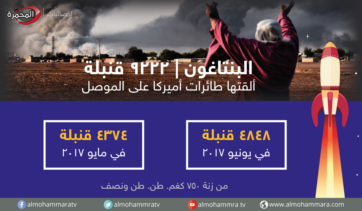 إحصائيات|البنتاغون: 9222 قنبلة ألقتها طائرات أمريكا على الموصل