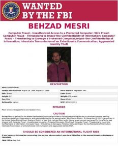 ونشرت الشرطة الفيدرالية "إف بي آي" بطاقة حمراء وطالبت باعتقال بهزاد مصري المولود في مدينة نقدة بمحافظة آذربيجان، غرب إيران.